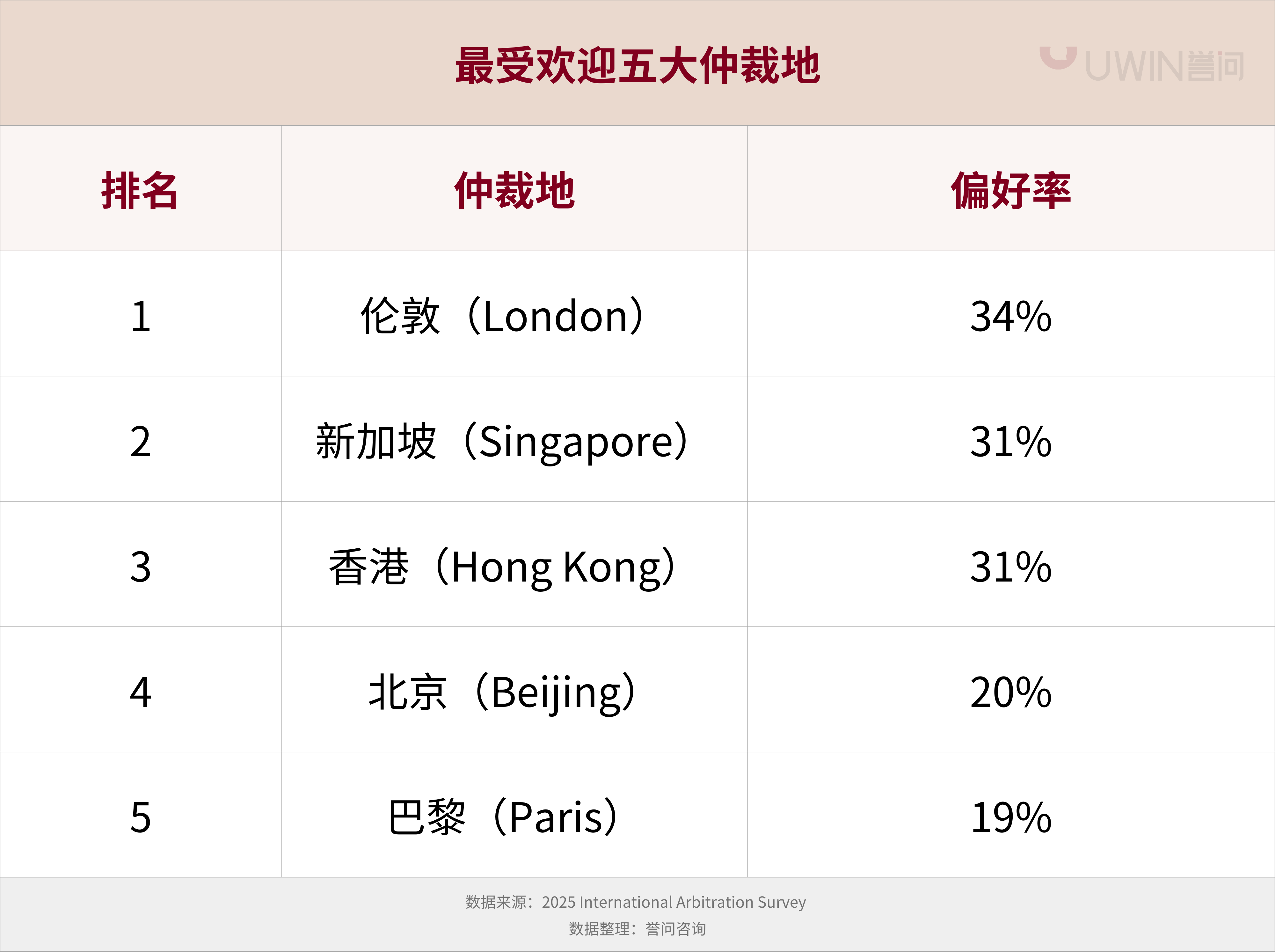 在亚太地区,香港、新加坡乃至北京、深圳等城市逐渐跻身主要仲裁地之列,体现出本地法律服务能力的跃升。欧洲与北美的用户则仍保有对传统席位的高度依赖,根据报告,伦敦依然是最受欢迎的仲裁地,在所有地区的受访者中均跻身前五,与之并列的还有新加坡,其在亚洲及欧美仲裁市场的渗透力持续提升。