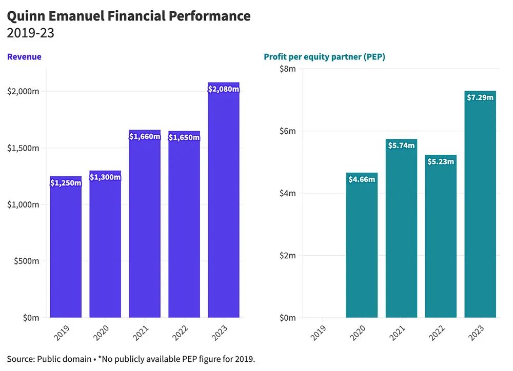 尽管Quinn Emanuel 在大律所生态中算是“边缘打法”,但在诉讼领域,它几乎无可匹敌: