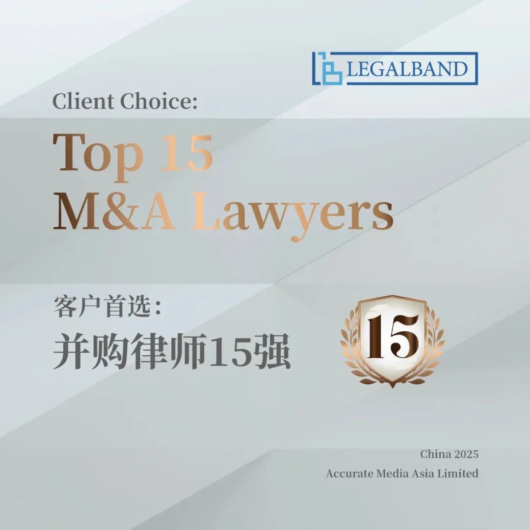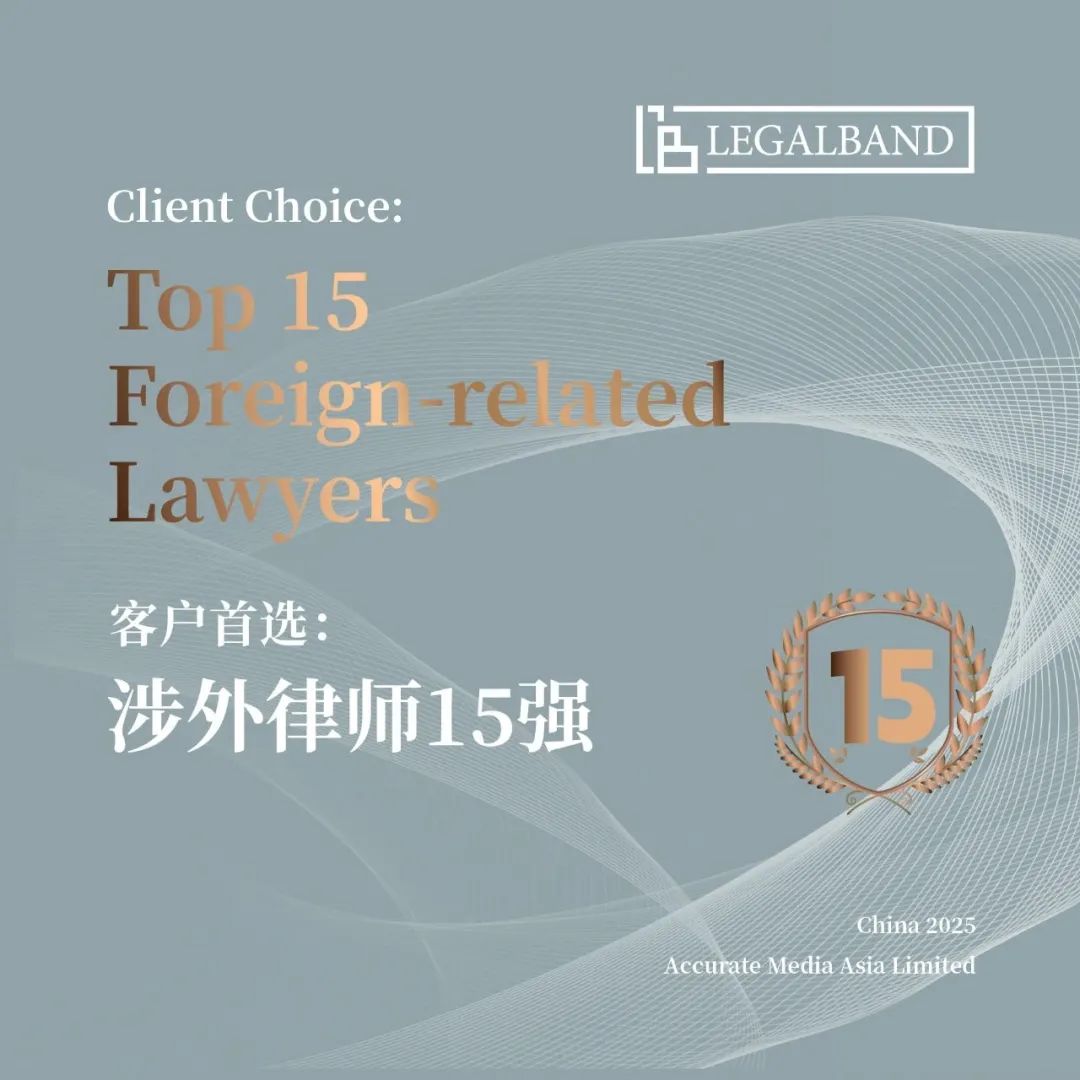 2025年5月8日,LEGALBAND正式公布「2025年度LEGALBAND客户首选:涉外律师15强」与「2025年度LEGALBAND客户首选:并购律师15强」榜单。