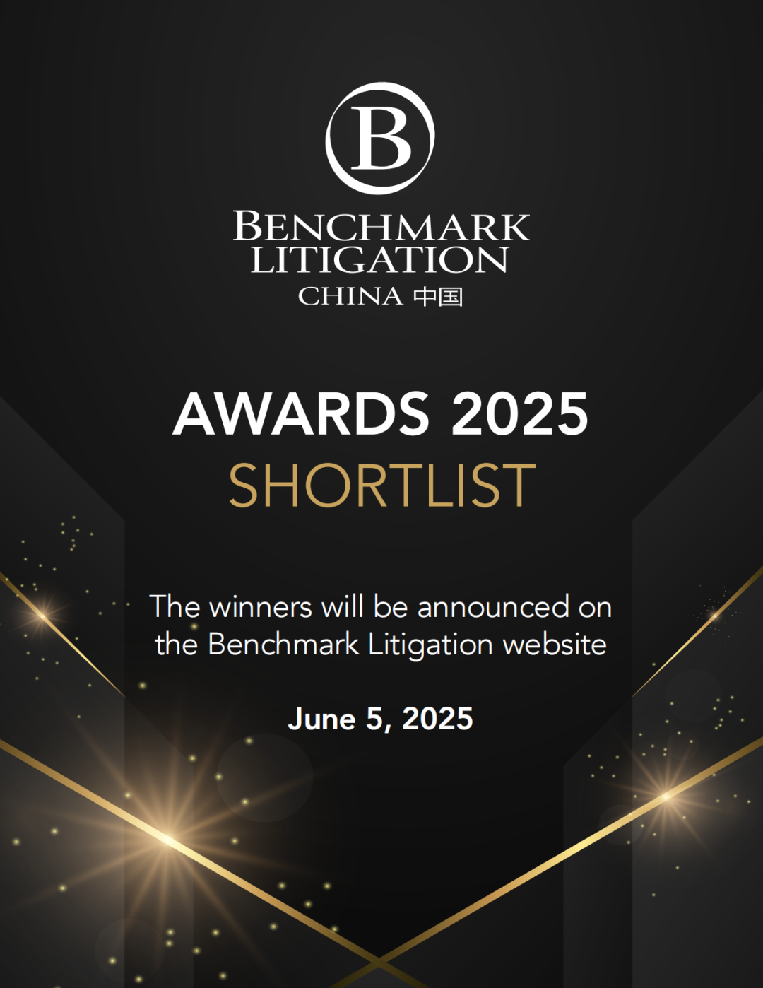 近日,Benchmark Litigation中国公布了2025年度Benchmark Litigation中国法律大奖的入围名单(Benchmark Litigation China Awards 2025 shortlist)。