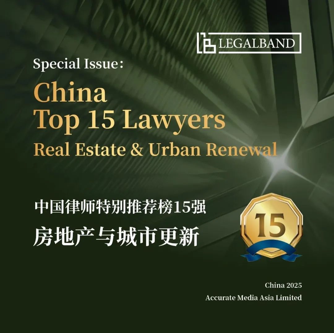 2025年6月5日,LEGALBAND公布了「2025年度LEGALBAND中国律师特别推荐榜15强:新兴产业」与「2025年度LEGALBAND中国律师特别推荐榜15强:房地产与城市更新」榜单。