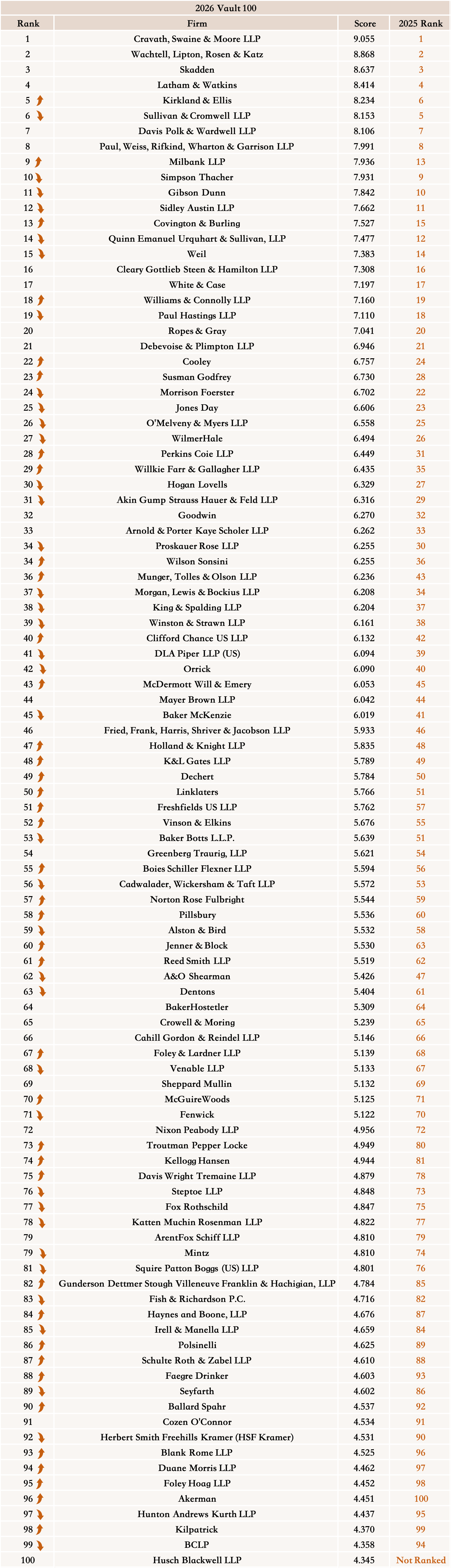 2026 Vault 100律所排名